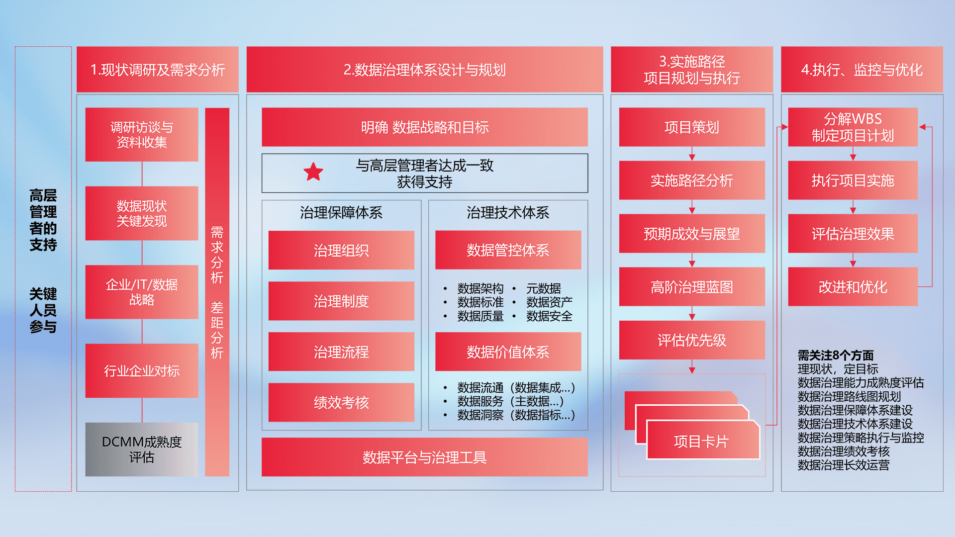 制定并执行统一的数据标准,,,规范数据定义和格式,,,消除冗余和不一致性,,实现跨部门和跨系统的数据一致性,,,,为企业提供标准化的数据基础。。。。